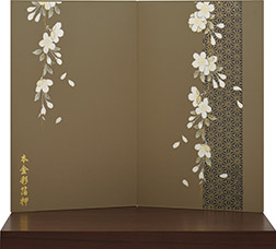 袋張屏風 縦ライン桜(モカ) BB25133-22・30 メーカー希望小売価格(税込) 22号 88,000円 30号 104,000円 黒塗平台 HD25126-20・23 メーカー希望小売価格(税込) 20号 20,200円 23号 36,200円 |